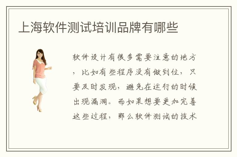 软件设计有很多需要注意的地方,比如有些程序没有做到位,只要及时发现,避免在运行的时候出现漏洞。而如果想要更加完善这些过程,那么软件测试的技术非常重要,可以了解很多细节方面的问题,让软件运行更加准确稳定。上海软件测试培训品牌有哪些,通常软件测试培训品牌比较优质的学校,对学员的基础可以更加了解,而且也可以针对不同学员的能力来培训,掌握学习的进度,因此选择学生更加习惯的学习方案,效率往往会更高,而且学习过程更轻松。上海软件测试培训品牌有哪些比较优越,软件测试培训的品牌往往特色鲜明,专业水平高,更加关注软件的设计和理论的学习、就业的应用等等。上海软件测试培训品牌有哪些好,如果是优质的软件测试培训平台,那么往往时间方面和成本方面、效率方面都是更加优越的。