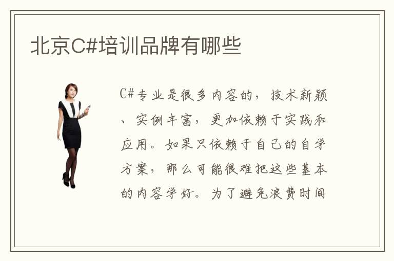 C#专业是很多内容的,技术新颖、实例丰富,更加依赖于实践和应用。如果只依赖于自己的自学方案,那么可能很难把这些基本的内容学好。为了避免浪费时间,可以多多掌握北京C#培训品牌有哪些,了解各种C#培训机构的优劣之处,然后再对比出适合自己到C#培训学校。北京C#培训品牌有哪些啊,其实C#培训机构有很多的,不过也有部分学生由于第一次考虑C#培训机构,并不是很了解哪些品牌比较有优势,那么可以重点关注培训的方案、C#专业培训效率,基本口碑等等,然后再做出合适的培训决定。北京C#培训品牌特色鲜明,如果品牌的效应比较强,那么基本的师资力量有保障,而且C#培训专业经验是非常丰富的,可以融合每个C#专业学生的基本能力以及学习习惯来培养。