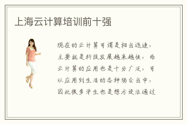 现在的云计算可谓是相当迅速,主要就是科技发展越来越快,而云计算的应用也是十分广泛,可以应用到生活的各种场合当中,因此很多学生也是想方设法通过云计算培训机构的帮忙,根据自己的能力来进行培训。那么可以重点关注上海云计算培训前十强,了解品牌优势比较明显的云计算机构,未来发挥更好的培训效果。上海云计算培训前十强哪些好,云计算培训前十强的品牌通常可以提供多项基础内容的知识,同时也能提供更加高端的课程内容,除了理论知识的讲解,还会更加侧重于软件操作和各项的实战演练、就业的辅导等等,让没有基础的学员也能够短时间内掌握整体的云计算运用。上海云计算培训前十强好吗,通常云计算培训机构比较靠前,说明这些专业培训的管理模式以及教学的质量会更加突出。
