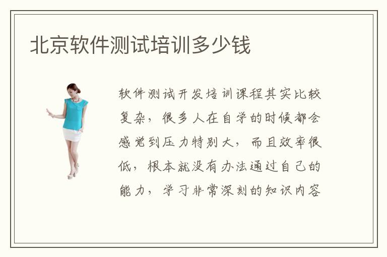 软件测试开发培训课程其实比较复杂,很多人在自学的时候都会感觉到压力特别大,而且效率很低,根本就没有办法通过自己的能力,学习非常深刻的知识内容。这个时候可以利用专业的培训机构,在软件测试培训老师的帮助下,得到更加优越进步。北京软件测试培训多少钱,可能是3000到2万元,但是这只是数字而已,并不是统一不变的。北京软件测试培训费用如果是3000以上,那么还是值得考虑的,因为有些机构非常便宜,并不一定能够取得优势,软件测试培训方面比较欠缺经验。北京软件测试培训多少钱,如果是入门级的基础培训课程,软件测试的课程比较低端,那么费用就会便宜,但是如果选择更高级的课程内容,那么可能就会需要更高的学习成本发挥更强的优势。
