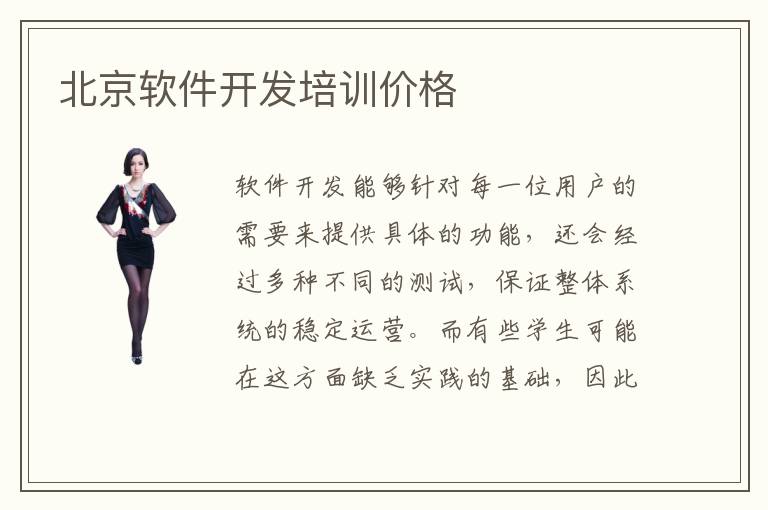 软件开发能够针对每一位用户的需要来提供具体的功能,还会经过多种不同的测试,保证整体系统的稳定运营。而有些学生可能在这方面缺乏实践的基础,因此在工作岗位上会遇到很多瓶颈。这个时候可以考虑软件开发培训机构,得到更好的帮助,未来取得更明显的进步。北京软件开发培训价格并没有一个统一数字,如果培训老师的能力更强,那么软件开发培训机构的效率高一点,未来的收费标准可能也会随着上涨。北京软件开发培训价格多少钱,软件开发培训机构的价格可能只是参考数字,大概是3000到1万,不过也有部分机构在培训方面没有太强的能力,因此通过低价的优势来吸引更多学生。北京软件开发培训教学环境是非常重要的考虑因素,因为软件开发培训非常注重应用,如果连基本的配套都没有,那么软件开发的教学成果突出。