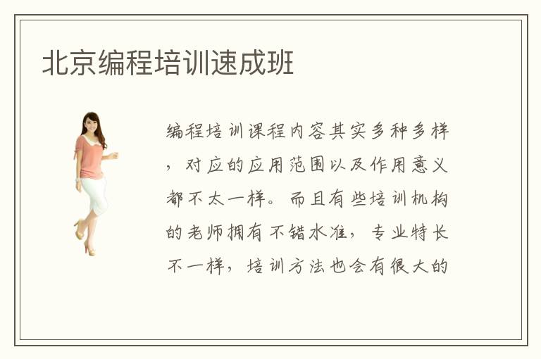 编程培训课程内容其实多种多样,对应的应用范围以及作用意义都不太一样。而且有些培训机构的老师拥有不错水准,专业特长不一样,培训方法也会有很大的差别。而有些人想要考虑北京编程培训速成班,那么可以多关注每一个编程培训班的基本优势,服务质量以及管理水平。北京编程培训速成班效率高吗,其实编程培训的速成班效率还是不错,很多人在这些机构学习都能取得不错的成绩和优势。有些学生可能专业领域方面缺乏了解,又或者是基础欠缺,那么通过专业的速成班,拥有更强的特色,未来找工作可以得到更好的发展机遇。北京编程培训速成班成果大多数都还是比较靠谱,因为培训速成班更加讲究效率,而且也会特别重视学生的教学成果,希望在更短时间内让学生掌握更多先进前沿的知识。