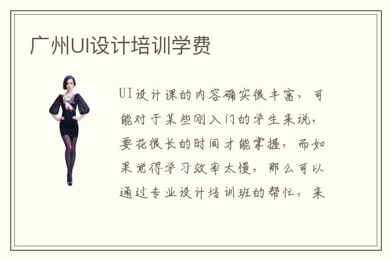 UI设计课的内容确实很丰富,可能对于某些刚入门的学生来说,要花很长的时间才能掌握,而如果觉得学习效率太慢,那么可以通过专业设计培训班的帮忙,来改善自己的UI专业实际应用能力。当然在选择UI设计培训班之前,可以先对比广州UI设计培训学费,找到信息比更高的学习机构。广州UI设计培训学费波动因素要看好几个角度,包括UI设计培训的课程等级、课程内容以及培训班的类型等等。有些学生可能在平时对这些专业比较感兴趣,但不是本专业的学生,可以考虑业余班。广州UI设计培训学费多少,而如果对于专业技能感兴趣,平时也没有真正用过UI设计的专业知识,那么可以选择就业辅导班,这些班级的费用可能在3000~9000元不等,主要看学校的等级以及口碑、培训成果。