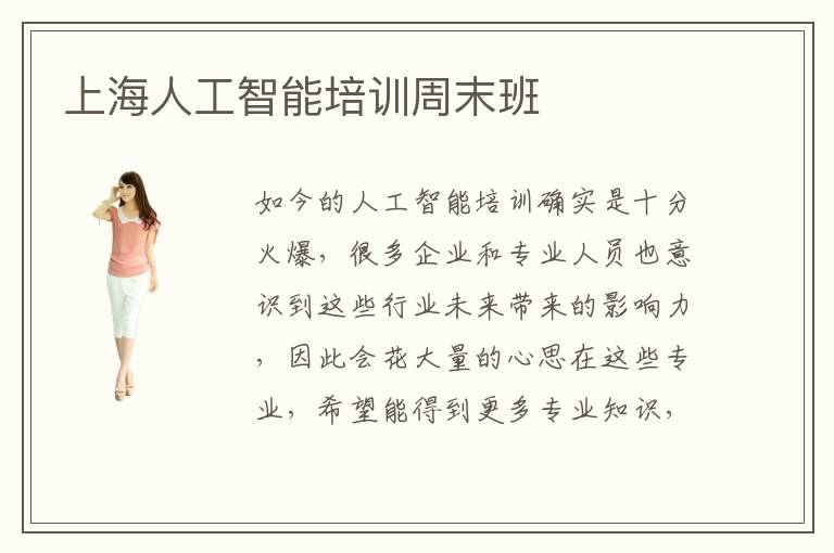 如今的人工智能培训确实是十分火爆,很多企业和专业人员也意识到这些行业未来带来的影响力,因此会花大量的心思在这些专业,希望能得到更多专业知识,优化未来科技,改善日常生活等等。大家如果觉得自己在这方面欠缺经验,可以考虑报名上海人工智能培训周末班,了解各方面的知识能力和真实的应用。上海人工智能培训周末班效率比较高,一方面在于周末一个星期有两天的时间,因此学习的时间更长,再加上人工智能培训班的老师往往有时更强,更加专注于实践应用,因此学生可以在这些老师的带领之下,找到更多实践应用的场景,同时学习理论知识的时候有更多发挥的空间。上海人工智能培训周末班怎么样,只要是比较高级的人工智能培训机构,往往都有更加全面的管理水准,而且人工智能课程质量也会更有保障。