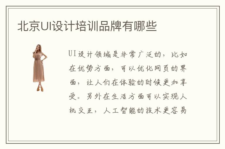 UI设计领域是非常广泛的,比如在优势方面,可以优化网页的界面,让人们在体验的时候更加享受。另外在生活方面可以实现人机交互,人工智能的技术更容易融入到人们的生活当中。而有些学生也看重UI设计这些专业的领域优势,想要找专业培训机构报名,但是还不了解北京UI设计培训品牌有哪些,那么可以多对比,找到口碑更好的机构类型。北京UI设计培训品牌有哪些呢,UI培训机构通常拥有不错的实力,专业能力强,也有更加专业的课程保障,因此在UI培训设计的内容方面可以得到更好的发展成绩。北京UI设计培训品牌特点明显,可以考虑一些口碑更好的机构,因为UI设计培训往往需要更多应用的场景,如果老师的教学效果不够,明显口碑不好,那么真的很难让学生信服,学习的时候确实不太好凸显成果。