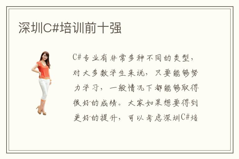 C#专业有非常多种不同的类型,对大多数学生来说,只要能够努力学习,一般情况下都能够取得很好的成绩。大家如果想要得到更好的提升,可以考虑深圳C#培训前十强,然后在老师的帮助下,优化自己的学习能力,而且能够改善发展的机遇,未来取得更加明显的成绩。深圳C#培训前十强成果一般会让学生感到满意,教育模式也相当生动,根据学生的需求可以选择全面的教学以及部分的教学内容,结合学生的所学知识和基础情况来进行培训,因此未来的发展成果会更有优势,效率也会上升。深圳C#培训前十强效率主要看学校的培养方法、学习的速度,有些学生可能本来就有很强的专业能力,多年来一直都是学霸,因此学习成果会比较显著,而且也不需要花很长的时间,效率是很高的。
