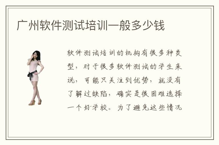 软件测试培训的机构有很多种类型,对于很多软件测试的学生来说,可能只关注到优势,就没有了解过缺陷,确实是很困难选择一个好学校。为了避免这些情况,大家可以多关注广州软件测试培训一般多少钱,了解不同软件测试培训公司的水平,专业的成果和质量、基本的学生口碑等等。广州软件测试培训一般多少钱可以信,软件测试培训的费用其实有多个价位,并不能够一概而论,如果是技术性的课程,一般2000~3000是很正常的,但如果是高端的课程,可以选择5000~8000左右的内容。广州软件测试培训一般多少钱靠谱,只要是培训的内容更丰富,教育的资源比较多的专业软件测试机构,往往都拥有更高的收费标准。但是也许有些人并没有这方面的考虑,只关注学习费用问题,那么可能会错过很多优质的机构。