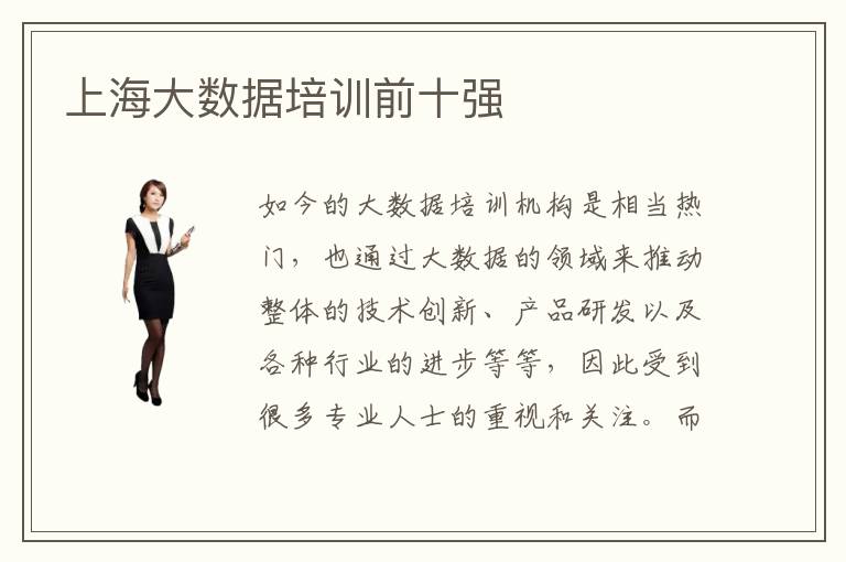 如今的大数据培训机构是相当热门,也通过大数据的领域来推动整体的技术创新、产品研发以及各种行业的进步等等,因此受到很多专业人士的重视和关注。而有些专业人员也想要透过培训班的帮助,改善自己的大数据应用和实力,那么可以参考上海大数据培训前十强,在这些知名品牌的帮助下,学习效果更稳定,也许不会有太多风险。上海大数据培训前十强优势有哪些,通常排名靠前的大数据培训机构都会有更好的学习成果,专业领域方面和技术方面都是更加先进的。上海大数据培训前十强是不是很厉害,大多数大数据培训机构的能力还是可以满足大家的学习预期目标,但是也有部分机构不是很厉害,能力不强,经验不够丰富,也不能够提供优越的学习方案,只是一些传统的教学内容,不能够满足时代的变化发展。