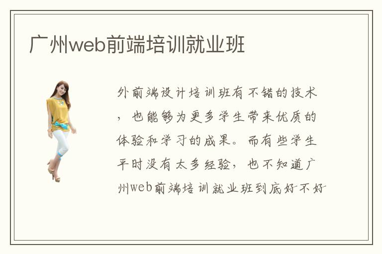 外前端设计培训班有不错的技术,也能够为更多学生带来优质的体验和学习的成果。而有些学生平时没有太多经验,也不知道广州web前端培训web前端培训就业班到底好不好,那么可以参考优质的培训班类型,通过几个月的学习,凸显出自己的成绩,让自己在web前端培训当中取得更明显的优势。广州web前端培训就业班难度大不大,web前端培训机构的就业难度是很小的,因为经过老师的专业辅导之后,往往学生可以更了解各种专业的应用,只要能够努力听从web前端培训老师安排,学习更多的就业的技能知识,往往还是可以凸显出明显的特色。广州web前端培训就业班很贵吗,web前端培训就业班的费用通常比较便宜,不过也要看学生的需求,如果选择低端课程、简单性的课程或者是业余课程,都比专业的课程产品。