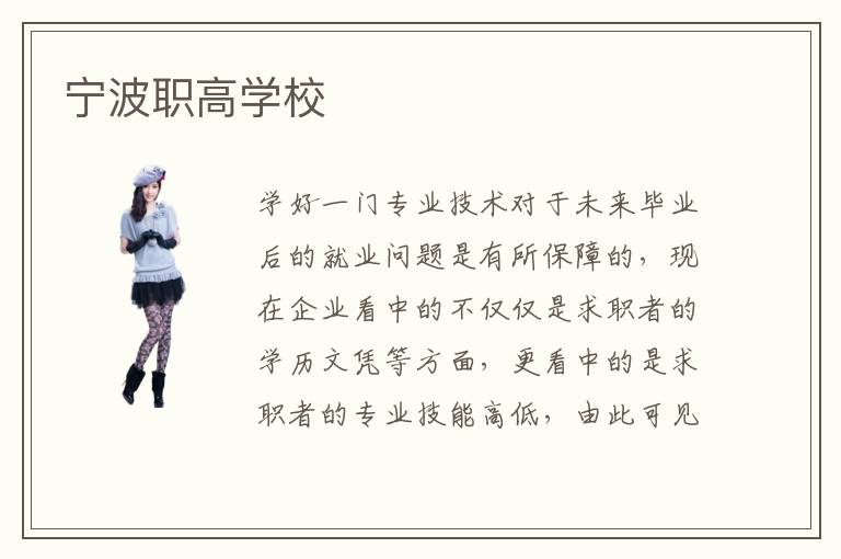 学好一门专业技术对于未来毕业后的就业问题是有所保障的,现在企业看中的不仅仅是求职者的学历文凭等方面,更看中的是求职者的专业技能高低,由此可见,学好专业技术能力就是找到靠谱工作的第一步。那么,你知道宁波职高学校哪家好嘛?不同的职业学校教学理念不同,教学方式自然也是有所差异的,想要学好一门专业技术,找到一家靠谱的职业学校是很重要的。