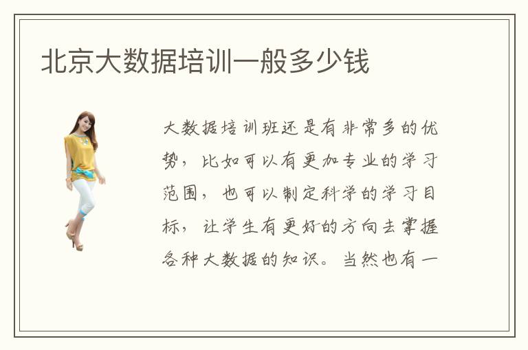 大数据培训班还是有非常多的优势,比如可以有更加专业的学习范围,也可以制定科学的学习目标,让学生有更好的方向去掌握各种大数据的知识。当然也有一些人会比较担心,大数据分析培训的价格比较贵,因此不敢报名。北京大数据培训一般多少钱,并没有一个统一的数字,因为大数据培训机构的价格有好多种因素,包括大数据分析能力、大数据培训班的等级、基本的水平、教育设施、老师的经验基础等等。北京大数据培训费大数据培训费用介绍,有些大数据去分析培训老师的能力比较强,因此在大数据培训方面拥有更好的教学成果,因此报名的费用可能会上涨。大数据培训价格分析,首先要看教学的能力和基本的口碑,如果一个大数据培训机构的老师经验不够丰富,而且也没有良好口碑,当然尽量避开选择。