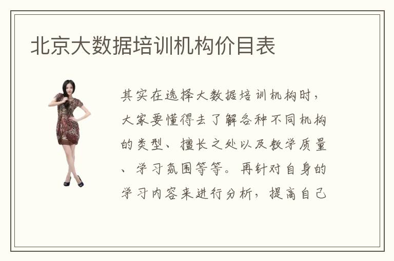其实在选择大数据培训机构时,大家要懂得去了解各种不同机构的类型、擅长之处以及教学质量、学习氛围等等。再针对自身的学习内容来进行分析,提高自己的专业就业能力,当然也可以多对比北京大数据培训机构价目表,找到更加优越的服务项目,又可以节省学习的成本和开支。北京大数据培训机构价目表多少钱,可能是3000元到9500元,但是这些账目表只是一个大概的区间,因为有很多课程内容,其实价格方面都存在差异。北京大数据培训机构价目表大概范围,要看各种培训的方案、难度以及学校的收费标准、教学的质量、口碑等等。如果学校的管理模式,经验和教学质量比较优越,而且口碑也比较好,那么未来的优势也会突出一点。但是如果学校的口碑不太好,专业的经验也有限,那么可能就很难让学生得到满意的成绩。