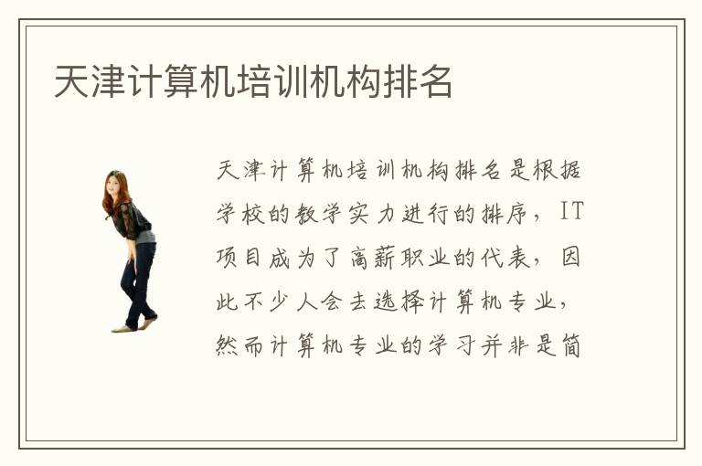 天津计算机培训计算机培训机构排名是根据学校的教学实力进行的排序,IT项目成为了高薪职业的代表,因此不少人会去选择计算机专业,然而计算机专业的学习并非是简单至此,也不能够一朝一夕,而是在慢慢的积累中不断沉淀不断发扬。天津计算机培训学校推荐可以参考天津计算机培训班排名。天津电脑学校哪家专业性最好?天津各大电脑IT教育学校培训比较怎么样?