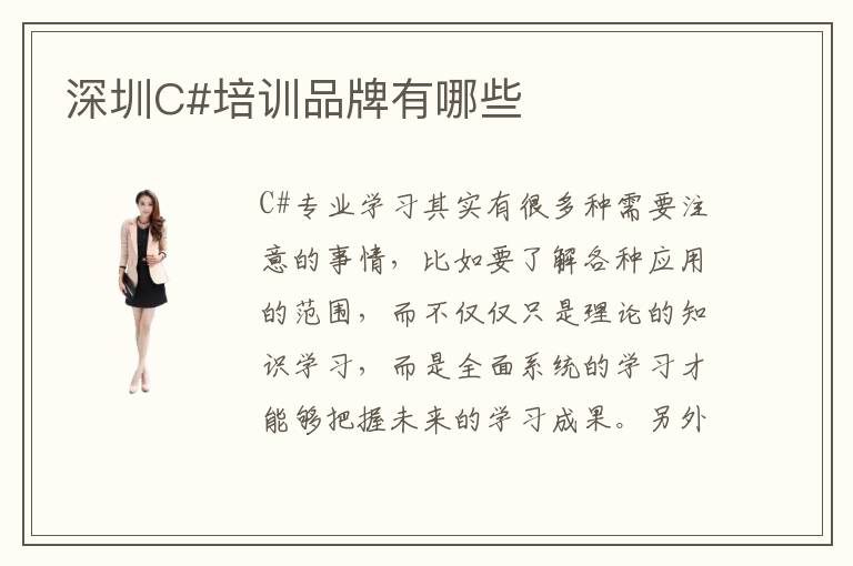 C#专业学习其实有很多种需要注意的事情,比如要了解各种应用的范围,而不仅仅只是理论的知识学习,而是全面系统的学习才能够把握未来的学习成果。另外如果学习到简单的内容,那么还是远远不够的,所以专业教育机构的人员也不要掉以轻心,还是要多把各种简单的复杂的知识共同结合,这样子才能够挖掘自身特色。另外也可以多多关心深圳C#培训品牌有哪些,因为如果是比较高级的品牌,那么培训的成果会更加遥远,更容易学生满意。深圳C#培训品牌有哪些成果,C#培训专业品牌的特色比较鲜明,管理模式也更加有保障。许多专业培训机构都可以为各种不同学生选择个性化的C#专业辅导,未来可以取得好成绩。深圳C#培训品牌有哪些优点,大多数C#培训机构品牌都有不错的学习能力,也可以融合应用的培训课程来讲解。