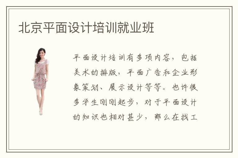 平面设计培训有多项内容,包括美术的排版,平面广告和企业形象策划、展示设计等等。也许很多学生刚刚起步,对于平面设计的知识也相对甚少,那么在找工作的时候往往特别困难。面对这样的情况,可以先报名北京平面设计培训就业班,然后有专业的老师帮忙,改善就业的水平,未来找平面设计相关的工作会更加方便。北京平面设计培训就业班多长时间,平面设计培训的就业班一般是一个星期到一个月左右,另外速度比较快,任务量任务非常大。因此作为学生也要做好充足的准备,了解各种培训的课程内容。北京平面设计培训就业班要不要选,其实如果在就业方面没有特别好的经验,或者是没有专业的应用能力,那么培训平面设计专业的就业班指导机构可以让学生拥有更强成绩。