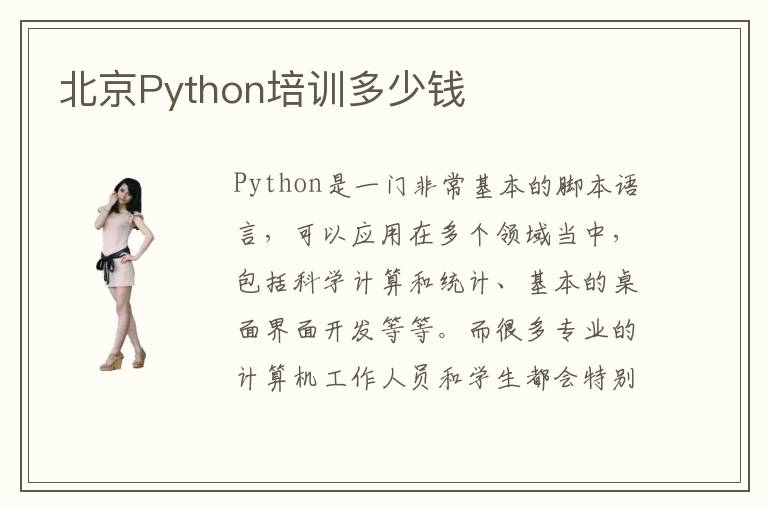 Python是一门非常基本的脚本语言,可以应用在多个领域当中,包括科学计算和统计、基本的桌面界面开发等等。而很多专业的计算机工作人员和学生都会特别关注这些专业,因此想要在这些领域得到更好的优势,会选择专业培训班,帮助自己得到提升。北京Python培训多少钱,一般是在3000~12,000元,不过这只是一个大概,没有统一的标准。而且在选择Python培训课程的时候,不能够只看到收费标准,要了解培训的方案培训质量、学生的口碑等等。北京Python培训多少钱合适,如果是选择普通的Python培训机构,那么可能在3000~5000元。但是如果选择更加高级的私人Python培训机构,那么可能培训费用方面就会有明显的上涨。北京Python培训多少钱影响因素,不同的学校收费不一样,另外个人学习时长也直接决定Python培训的价格。