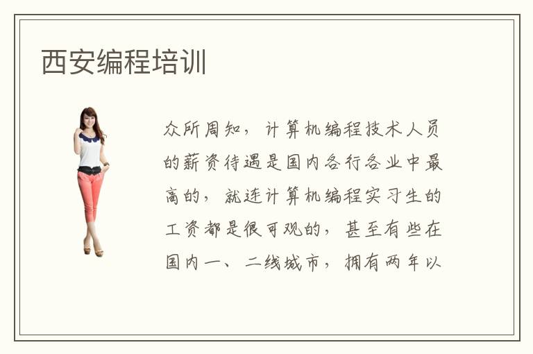 众所周知,计算机编程技术人员的薪资待遇是国内各行各业中最高的,就连计算机编程实习生的工资都是很可观的,甚至有些在国内一、二线城市,拥有两年以上计算机编程设计相关工作经验的编程工程师,已经达到了月收入过万的高标准了。那么,西安编程培训所需要的学习费用是多少呢?不同的培训学校收取的培训费是不同的,具体还是要按照它们的收费标准决定的。
