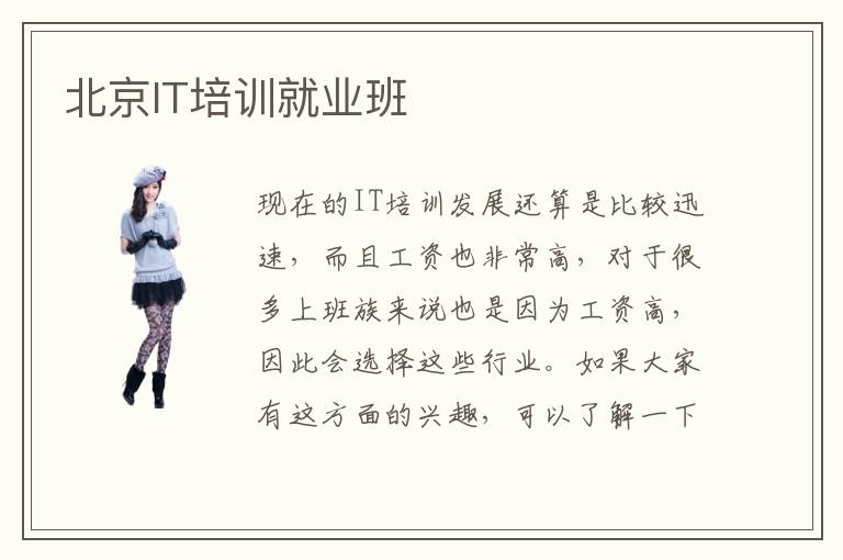 现在的IT培训发展还算是比较迅速,而且工资也非常高,对于很多上班族来说也是因为工资高,因此会选择这些行业。如果大家有这方面的兴趣,可以了解一下北京IT培训就业班,优化自己的技能,一方面可以改善未来就业机会,另外一方面又可以增长自己的见识,收获更高的工资待遇。IT培训就业班效果,IT培训就业班往往拥有不错的能力,可以了解学生所需,也能更加针对于就业的方向来培养,让专业学生可以得到更多就业的优势。北京IT培训就业班怎么样,如果可以找到优质的IT就业培训班,那么往往可以优化个人能力,实力更强,也能找到自己的缺陷,培养正确的应用思维。而有些劣质的培训班只是照本宣科,确实很难为学生制定科学的IT培训方法,而且课程内容可能是过时的,未来当然很难得到长远进步。