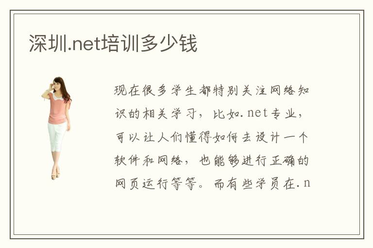 现在很多学生都特别关注网络知识的相关学习,比如.net专业,可以让人们懂得如何去设计一个软件和网络,也能够进行正确的网页运行等等。而有些学员在.net专业领域方面并不是特别重视,或者是忽略了专业的培养方法,那么可能就很难发挥出满意的成绩。所以大家应该要多多关心这些内容,掌握各种不同的深圳.net培训多少钱。深圳.net培训多少钱,可能在3000~8900。因为现在的课程设置内容实在太多,而有些学生可能就不太了解这些内容,但是有专业的老师帮助,也许就可以节省很多时间,制定科学.net专业内容,因此未来也不会有太多障碍。深圳.net培训多少钱影响因素,要看个人的学习时间以及培养的基础、培训的内容、基本的配套设施等等。如果学生的能力很强,资源配套更完善,那么这些机构有更高收费标准也是合乎情理。