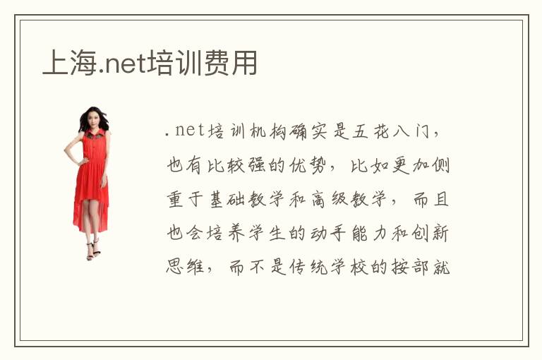 .net培训机构确实是五花八门,也有比较强的优势,比如更加侧重于基础教学和高级教学,而且也会培养学生的动手能力和创新思维,而不是传统学校的按部就班进行理论的教学。对于.net培训机构的学员,可以先关注上海.net培训费用,然后再找到性价比比较高的.net培训机构,提高优质的教学质量,取得更长远的进步。上海.net培训费用是多少,.net培训的费用其实也应该从好几个角度来分析判断,比如有些人的自学能力差,想要选择简单的基础.net培训课程,那么这个时候的费用只需要2000元到3800块钱左右即可。上海.net培训费用波动因素也不是完全固定,因为不同的培训机构有不同的标准。比如有些机构本来专业优势就很明显,而且教育的质量和口碑也相当不错,因此.net培训费用可能比其他专业机构稍微高一点。