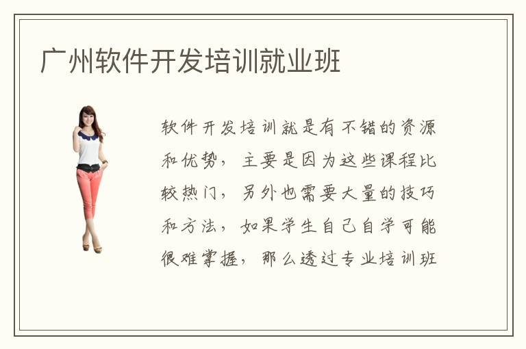 软件开发培训就是有不错的资源和优势,主要是因为这些课程比较热门,另外也需要大量的技巧和方法,如果学生自己自学可能很难掌握,那么透过专业培训班的方式,也许可以为大家提供更加优质的经验,而且也能减少很多学习软件开发的插入,更快掌握这些关键的知识点。如果对这方面不是很了解,可以参考广州软件开发培训就业班,老师的软件开发经验丰富,而且课程内容也更加全面。广州软件开发培训就业班师资力量如何,其实如果是比较优质的培训机构,那么软件开发培训老师的水平会更高,也能激发学员的动力和发展的潜能。广州软件开发培训就业班好吗,通常就业班的指导优势更加明显,也能针对就业等方面来进行培训。如果学生在就业方面缺乏信心,老师也能适当鼓励,让学生变得更加优秀。