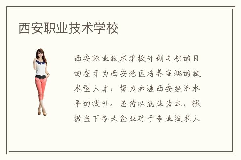 西安职业技术学校开创之初的目的在于为西安地区培养高端的技术型人才,努力加速西安经济水平的提升。坚持以就业为本,根据当下各大企业对于专业技术人才的招聘要求,努力为学员引进最先进的培训课程,为今后可以找到对口的高薪工作做准备。西安职业技术学校拥有一流的教学团队,采取一对一名师小班教学的培训模式,保障每一位学员的都能够高效完成专业的学习。