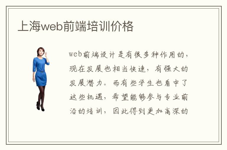 web前端设计是有很多种作用的,现在发展也相当快速,有强大的发展潜力。而有些学生也看中了这些机遇,希望能够参与专业前沿的培训,因此得到更加高深的技术,未来就可以得到更多专业的知识,发挥出良好的技术优势。上海web前端培训价格可能会在3000~15,000元,由于现在的前端设计公司类型五花八门,因此等级和服务质量、培训方案、实战演练的机会等等方面都不一样。因此学生除了要考虑基本费用之外,还要从这几个角度去分析。上海web前端培训价格大概多少,web前端培训的费用其实是很难确定,因为课程等级有很多,包括启蒙型的和趣味性等等,还有高端性的,这些都有不同的培训收费标准。上海web前端培训价格范围,如果是属于高端的项目,可能在5000到3万。但是可能有部分学生学习是基础性的课程,因此3000左右就可以报名。