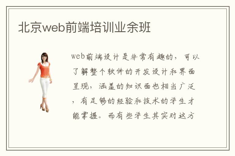 web前端设计是非常有趣的,可以了解整个软件的开发设计和界面呈现,涵盖的知识面也相当广泛,有足够的经验和技术的学生才能掌握。而有些学生其实对这方面也很感兴趣,想要挑战自己,优化知识的结构,那么可以考虑一下北京web前端培训业余班,老师会根据每个人的学习能力和基本的知识、经验基础等等方面来制定课程,让每一个学生的前端设计能力都可以变得更强。北京web前端培训业余班选择要考虑业余班的课程内容,个人的能力以及感兴趣的领域,有些人可能并不是很了解,在找专业前端设计培训机构时没有很明显的优势,因此成果是很糟糕的,所以要谨慎对比。北京web前端培训业余班成果一般都不错,只不过有些学生找到特别劣质的机构,那么成果很难凸显,虽然报名费用更低,但是不值得大家考虑。