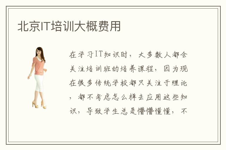 在学习IT知识时,大多数人都会关注培训班的培养课程,因为现在很多传统学校都只关注于理论,都不考虑怎么样去应用这些知识,导致学生总是懵懵懂懂,不知道如何进步。那么大家要是想进行IT培训,那么可以了解一下北京IT培训大概费用。IT培训机构大概费用可能在3000元到1万,但是也不排除某些学生的基础水平比较高,因此可以选择更高端的IT专业培训项目,这个时候的费用可能会上涨。IT培训大概费用贵不贵,如果能够选择高级的IT资讯机构,那么往往专业的水平更高,而且也能了解学生的就业能力和发展方向、兴趣爱好等等,然后再选择性进行培养,让学生在挖掘兴趣和潜力的同时,又可以得到更多IT专业的知识,同时也能在IT行业中取得更长远进步。