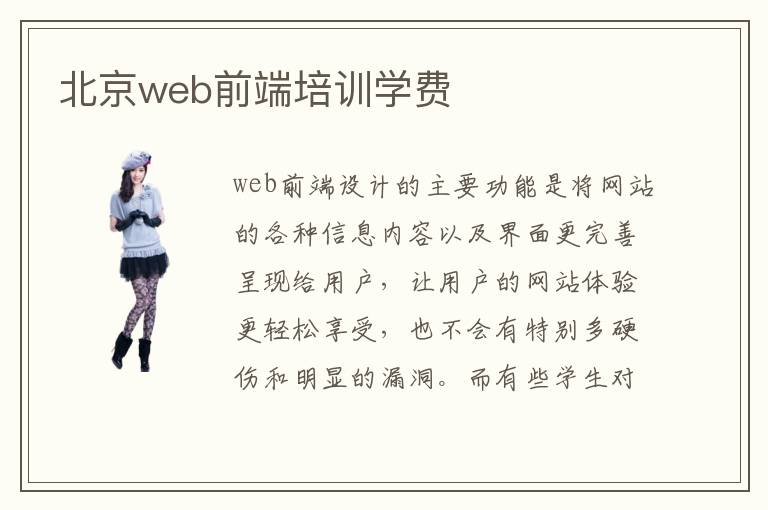 web前端设计的主要功能是将网站的各种信息内容以及界面更完善呈现给用户,让用户的网站体验更轻松享受,也不会有特别多硬伤和明显的漏洞。而有些学生对外前端设计也感兴趣,但是由于刚刚起步,不了解相关的经验和基本的知识,那么可以重点考虑web前端培训学校,在老师的指导后也许进步更加突出。北京web前端培训学费应该要看每个机构的收费标准,另外由于现在培训机构实在太多,所以学生在选择前端设计培训机构时,要针对性了解不同机构的能力以及擅长之处、可能存在的问题等等来综合考虑。北京web前端培训学费大概多少,一般会在3千~1万元左右,可是有些学生可能在找前端设计培训学校时,只关注费用,却没有考虑过效率,成果很难凸显。北京web前端培训学费如何选,其实跟教学质量有关系,如果质量不算高,那么培训的前端设计的专业费用可能就会低点。