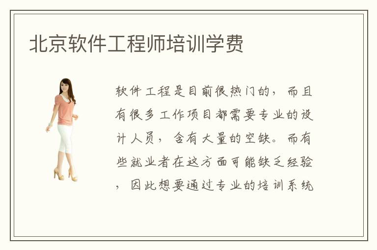 软件工程是目前很热门的,而且有很多工作项目都需要专业的设计人员,含有大量的空缺。而有些就业者在这方面可能缺乏经验,因此想要通过专业的培训系统之后,得到更好的就业优势,未来找工作更加方便。北京软件工程师培训学费,北京软件工程师培训学费多少比较好,软件工程师培训学费可能在1万到2万元,不过这些只是大概,因为有相当多参考因素,包括培训的方法、培训内容、培训方案等等。另外培训软件工程的这些内容有很多,所以应该要有针对性,结合自己的基本经验和学习基础来选择。北京软件工程师培训学费介绍,就算没有学习的资金,也是可以通过预支的方法来报名,当然每个学生的条件不同,因此选择课程方案的内容不一样,那么报名费用都会有一点点区别。