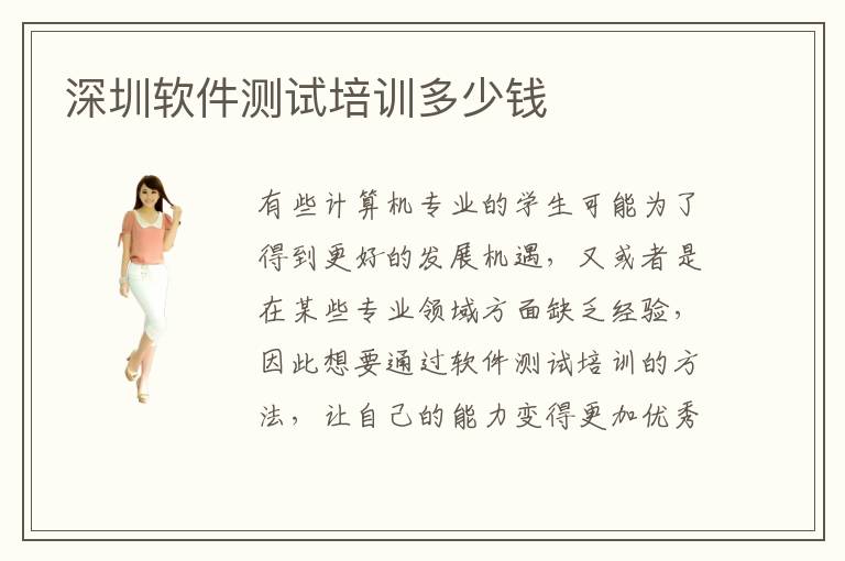 有些计算机专业的学生可能为了得到更好的发展机遇,又或者是在某些专业领域方面缺乏经验,因此想要通过软件测试培训的方法,让自己的能力变得更加优秀,也能够得到更广泛的发展。这个时候,如果通过自学的方法能提高软件测试的能力,那么可以选择一些比较专业的软件测试培训机构,老师的指导之后,也许方向更明确,效果更明显。深圳软件测试培训多少钱,可能在2000~5000元,当然有一些重要的课程内容,需要学生花更多时间去安排学习,这个时候学费会上涨。深圳软件测试培训多少钱合适,如果缺乏学生应用,可以考虑就业班以及专业辅导班,软件测试培训的费用可能在5000~6000元左右。深圳软件测试培训多少钱影响因素,要看不同的教育水平,教育机构的收费标准以及市场行情。