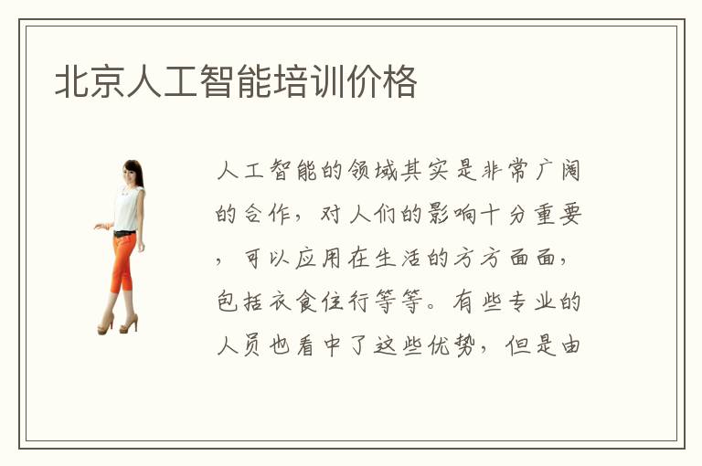 人工智能的领域其实是非常广阔的合作,对人们的影响十分重要,可以应用在生活的方方面面,包括衣食住行等等。有些专业的人员也看中了这些优势,但是由于人工智能处于刚起步阶段,大多数人都属于半知半懂的状态,这个时候不妨在人工智能培训机构的帮助下进行学习,未来取得更好的人工智能发展成绩。北京人工智能培训价格,北京人工智能培训价格考虑,应该要看人工智能培训机构的专业水平、教学成果和发展目标等等。也许有些培训机构并没有特别专业的能力,老师不够强,因此人工智能培训的力量就会减弱。北京人工智能培训费用要看人工智能机构的收费标准,因为课程内容不一样、老师水平以及资源配套、周围环境、教学方案等等都存在差别,因此具体人工智能的收费标准应该是存在波动的。