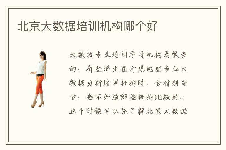 大数据专业培训学习机构是很多的,有些学生在考虑这些专业大数据分析培训机构时,会特别苦恼,也不知道哪些机构比较好。这个时候可以先了解北京大数据培训大数据培训机构哪个好,以及各种不同学校的专业成绩、教育质量、环境优势以及基本的资历等等。北京大数据培训机构哪个好专业水准,一般情况下,到时候大数据培训机构的专业水平都相当不错,老师的教学经验也比较丰富,一直都可以不断优化管理的模式和教学的水平,因此学生的进步也会更容易凸显。北京大数据培训机构哪个好资历,通常比较好的机构都有优秀的管理能力,而且实力都比较强。但是主要看老师的水平、教学资源配套以及学生的学习氛围、教学课程内容等。如果大数据专业培训机构的教学内容是很简单的,当然是很难让学生感到满意。
