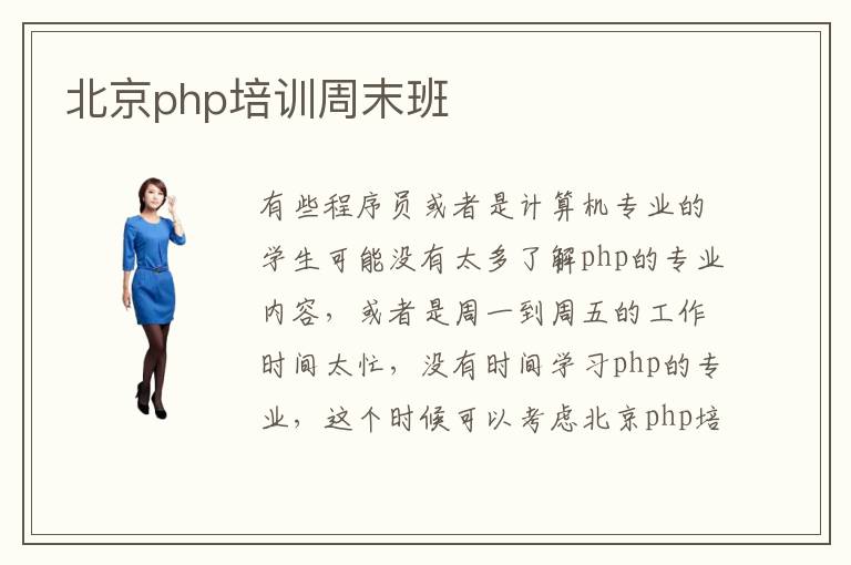 有些程序员或者是计算机专业的学生可能没有太多了解php的专业内容,或者是周一到周五的工作时间太忙,没有时间学习php的专业,这个时候可以考虑北京php培训周末班,利用这些周末的时间进行专业训练,往往得到更好的提升。北京php培训周末班如何,php培训周末班通常会利用周末的时间来进行讲解,或者是周一到周五的晚上,这些时间段通常效率都比较高,也是弯道超车的好机会。要选择php周末培训机构,那么应该要对比各种机构的教学质量以及服务水平、管理能力、基本的教学经验等等。北京php培训周末班效率往往都比较高,只不过有些php培训周末班的老师缺乏经验,而且也没有科学课程内容,因此很多学生学习的内容都是过时的,未来的专业进步当然就很难体现。