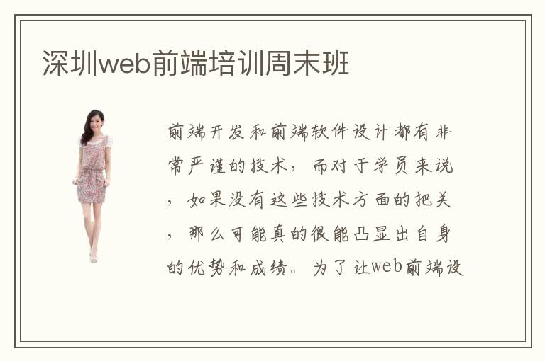 前端开发和前端软件设计都有非常严谨的技术,而对于学员来说,如果没有这些技术方面的把关,那么可能真的很能凸显出自身的优势和成绩。为了让web前端设计专业能力更强,取得更好的成绩,大家可以多考虑深圳web前端培训周末班,充分利用这些休息时间,再凸显出自身的专业成果。深圳web前端培训周末班容易吗,大多数都还是比较合适的,都有很多web前端设计专业的人群,如果想要找到合适的教学方案,那么可以由专业的培训辅导班进行设置。深圳web前端培训周末班如何,如果是一些很高端的web前端培训课程,虽然说一个星期只有两天上课的时间,但是学习费用可能在5000元到8500元左右。所以学生自己要去对比各种不同的培训方法,培训的质量以及培训课程的大概收费标准等等。