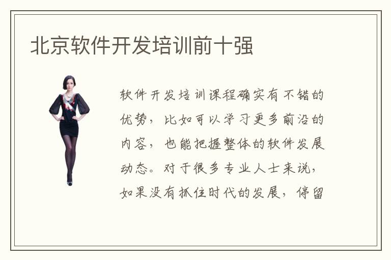 软件开发培训课程确实有不错的优势,比如可以学习更多前沿的内容,也能把握整体的软件发展动态。对于很多专业人士来说,如果没有抓住时代的发展,停留在原地,那么可能会被时代淘汰。这个时候大家可以了解北京软件开发培训前十强,在老师的专业培训帮助之后,得到更长远的发展的进步。北京软件开发培训前十强教学质量一般都很强,因为教学质量直接决定着培养的效果。如果连基本的教学质量和师资力量都没有办法提供,那么软件开发培训机构的教学成果当然就会令人质疑。北京软件开发培训前十强好不好,一般都有不错管理模式、教学能力强。但是由于不同的管理理念、教学方案以及培训老师都不一样,因此在选择北京软件开发培训机构时,要有专业的老师来指导,但是也尽可能找更加知名的机构类型。