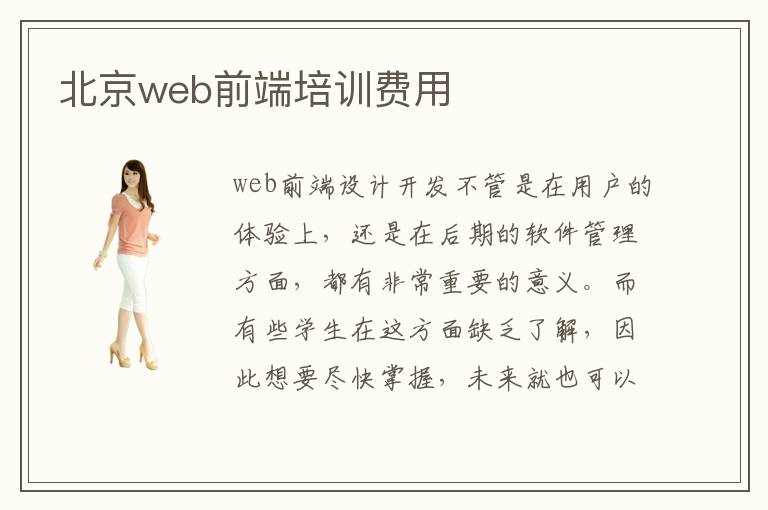 web前端设计开发不管是在用户的体验上,还是在后期的软件管理方面,都有非常重要的意义。而有些学生在这方面缺乏了解,因此想要尽快掌握,未来就也可以拥有更强的优势。这时学生可以多关注优质的前端设计培训公司,在专业的web前端设计培训老师帮助之后,也许在前端开发专业领域方面有更突出的优势。北京web前端培训费web前端培训费用可能是3000元到2万元之间,但是也有部分培训机构可能是有更高的标准,因此在培训费用以及培训效果方面会更加突出。北京web前端培训费用多少,一般要看培训机构的类型和培训方案等等。其实web前端设计培训有很多种类型,培训的费用也是存在差异的。北京web前端培训费用影响因素和老师的培训方法、培训的时间有关系,假如老师的水平更高,培训时间很长,可能报名前端培训的费用就会上涨。