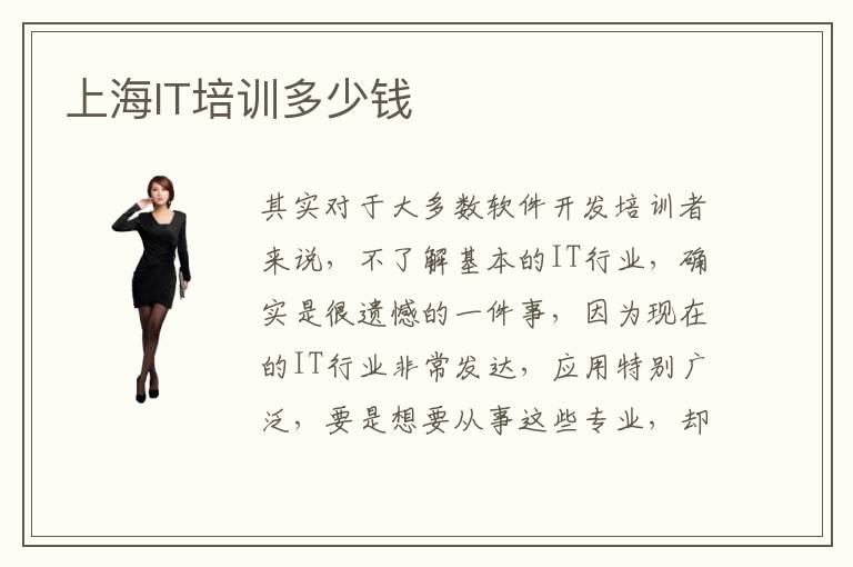 其实对于大多数软件开发培训者来说,不了解基本的IT行业,确实是很遗憾的一件事,因为现在的IT行业非常发达,应用特别广泛,要是想要从事这些专业,却没有相应了解,会遇到很多风险和瓶颈。因此大家有必要了解IT培训学校,然后再参与报名。上海IT培训多少钱,一般在3000~5000,不过也不排除某些机构的知名度高,品牌效应强,能够通过这些品牌的优势吸引更多学生,因此在收费方面会更高。上海IT培训价格介绍,优势明显的IT培训机构往往在培养方案上都有专业的老师来制定,因此在教学成果方面能够与时俱进,根据时代的发展来培养,未来对学生的帮助更大,那么这个时候可能要更高费用。上海IT培训费用便宜,一般情况下IT培训学费都不会低于1000块,不要贪小便宜。