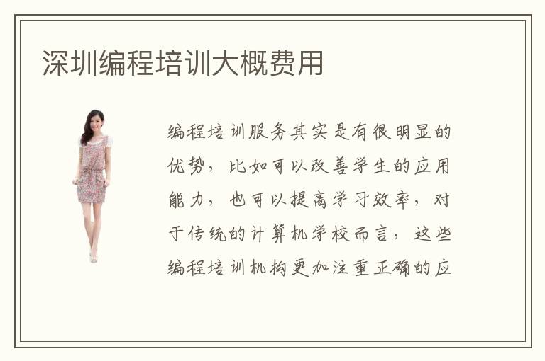 编程培训服务其实是有很明显的优势,比如可以改善学生的应用能力,也可以提高学习效率,对于传统的计算机学校而言,这些编程培训机构更加注重正确的应用和动手能力,让学生可以更快将各种理论知识应用到真实场景中,发挥理想的个人价值。深圳编程培训大概费用可能在2000~7000元,当然只是参考而已。深圳编程培训大概费用值得考虑吗,其实要看个人的学习情况,有些人时间比较多,可以考虑自学的方法。但是如果时间有限,那么考虑编程培训班也是不错的想法。深圳编程培训大概费用怎么样省下来,首先要结合自己的能力来选择不同的班级类型,有些班级属于比较高端的课程,那么这个时候需要更高预算。但是只要能够学习的比较全面,在未来应用更有优势,那么这些费用还是比较值得。