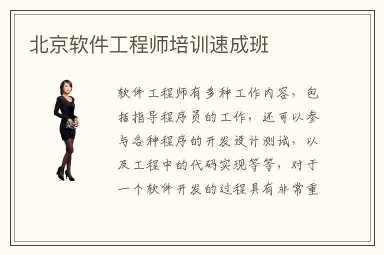 软件工程师有多种工作内容,包括指导程序员的工作,还可以参与各种程序的开发设计测试,以及工程中的代码实现等等,对于一个软件开发的过程具有非常重要的意义。而有些刚投入工作的上班族和程序员来说,如果没有专业的知识,那么很难得到优越的工作地位。这个时候可以参考北京软件工程师培训速成班,在老师的专业指导下,优化软件工程师的力量。北京软件工程师培训班能力往往是很强的,老师能力很突出,专业的学习效率也很高。不过也有部分软件工程培训班没有这方面的特色优势,也会影响学生的软件工程培训进度。北京软件工程师培训速成班效率通常都能够有保障,主要原因是软件工程培训的课程内容比较有针对性,目标性强,老师培养学生的时候有更高的效率。