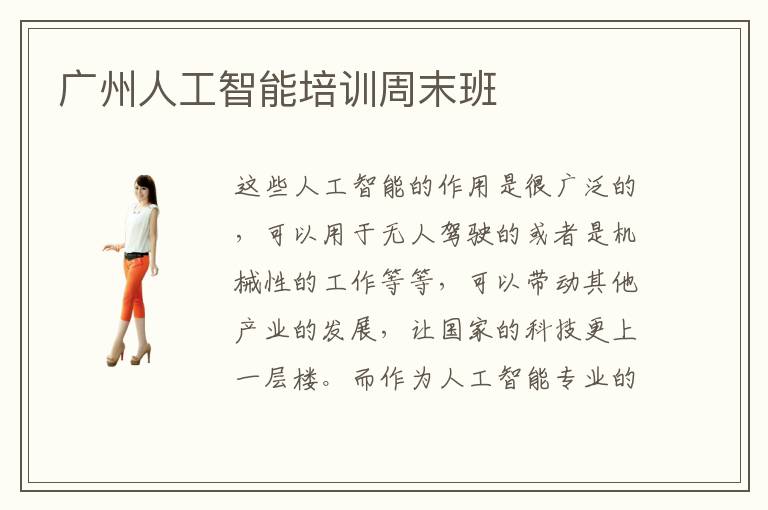 这些人工智能的作用是很广泛的,可以用于无人驾驶的或者是机械性的工作等等,可以带动其他产业的发展,让国家的科技更上一层楼。而作为人工智能专业的计算机人员,应该要多多关注自己的储备,不断优化应用的技能,也能开创更新的事业。当然如果对这方面才刚刚起步,不了解如何应用,可以考虑广州人工智能培训周末班,老师会进行更专业更详尽的讲解。广州人工智能培训周末班要花多久,人工智能培训周末班所需时间大概是两个月到三个月左右,其实真正所需要的时间是两个星期到三个星期,这一些时间往往是非常高效的,老师也可以将一些精华的知识点呈现出来,让学生可以更快吸收。广州人工智能培训周末班成果大多数都很不错,能力很强,又有非常强的特色以及优势。