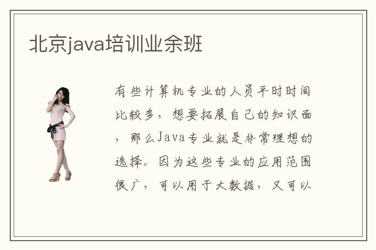 有些计算机专业的人员平时时间比较多,想要拓展自己的知识面,那么Java专业就是非常理想的选择。因为这些专业的应用范围很广,可以用于大数据,又可以用科学计算机运算等等。而大家如果想要学习,可以多关注北京java培训业余班,在老师的帮助后也对这些领域有更加深刻的理解。北京java培训业余班好不好,如果觉得自己在计算机专业领域没有太多了解,也不知道应该要学习哪些方向,那么不妨报名Java培训业余班,了解大概的专业知识内容,都是能避开各种专业的难度,在学习的过程中可以充分挖掘这些专业的优势以及兴趣。北京java培训业余班优势主要是专业能力强,也通过寓教于乐和1对1指导等多种特色的课程服务方法,让更多Java专业的学生学有所成,也在学习的过程中积累更多经验,树立坚定的自信。