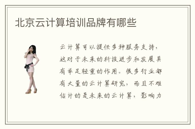 云计算可以提供多种服务支持,这对于未来的科技进步和发展具有举足轻重的作用。很多行业都有大量的云计算研究,而且不难估计的是未来的云计算,影响力也会越来越大,甚至渗透到人们衣食住行的方方面面。而有些人也希望报名云计算培训机构,得到更多专业的知识,但是还不了解北京云计算培训品牌有哪些,因此很难作出选择。北京云计算培训品牌实力比较强的情况下,制定出来的课程方案也会更科学,而且培训的课程内容更符合时代的发展,因此学生可以节省更多时间,将一些重要的知识点掌握起来,在职场中也可以得到更优越的进步。北京云计算培训品牌有哪些靠谱,云计算培训品牌的质量其实要看师资力量、基本的学生口碑。有些师资力量比较强的学校,确实可以直接决定云计算培训的成果。