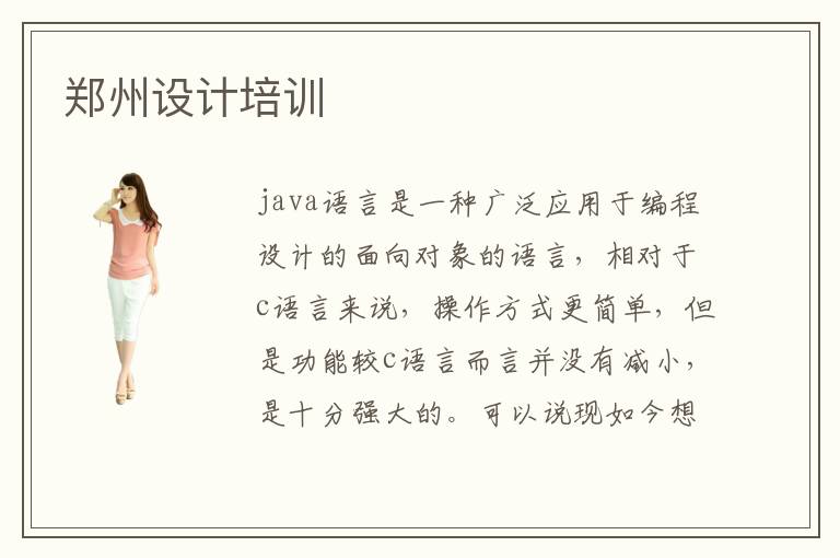 java语言是一种广泛应用于编程设计的面向对象的语言,相对于c语言来说,操作方式更简单,但是功能较c语言而言并没有减小,是十分强大的。可以说现如今想要学习编程技术,java语言是必学的专业课程。那么,郑州java语言编程设计培训你觉得怎么样呢?郑州java语言编程设计培训,注重学员的实践与理论相结合的教学模式,是个学习java语言编程技术的好平台。