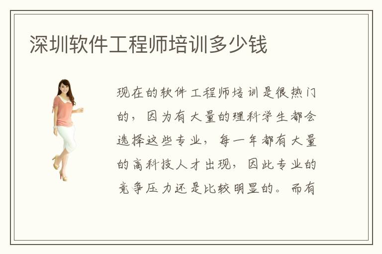 现在的软件工程师培训是很热门的,因为有大量的理科学生都会选择这些专业,每一年都有大量的高科技人才出现,因此专业的竞争压力还是比较明显的。而有些学生也不敢怠慢,希望不断去优化自身的软件,工程师李因此取得更惊人的成绩,未来在职场竞争中也可以得到更多发展的空间和机会。深圳软件工程师培训多少钱,可能是在2000元到5000元,当然有一些机构在专业教育质量方面有不错保障,因此费用比其他机构高一点是很正常的。深圳软件工程师培训多少钱合适,有不同专业的学生、学习能力和学习水平基础情况都不一样一致,软件工程师培训的费用也是因人而异。深圳软件工程师培训多少钱靠谱,有些学校的教学质量高,管理水平也更加全面,带来高质量的教学成果,因此费用高也值得接受。
