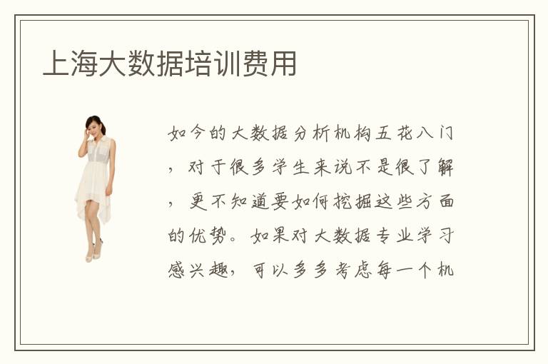如今的大数据分析机构五花八门,对于很多学生来说不是很了解,更不知道要如何挖掘这些方面的优势。如果对大数据专业学习感兴趣,可以多多考虑每一个机构的能力以及大概的费用,以比较低的价格学习更多有用的知识内容。上海大数据培训大数据培训费用,上海大数据培训费用大概多少,大数据培训的学费其实一般都不会太贵,主要原因是这些课程都属于基础性的,都有很多人都是都可以快速掌握。上海大数据培训费用学生能负担吗,如果学生在大数据方面有很多经验,而且也有比较扎实的基本功,那么可以选择更加高级的培训课程,这样的费用可能会更贵,但是由于技能更强,因此优势会更明显,未来在就业时,就可以应用到更加广泛的领域,因此也可以把握自己的未来大数据专业发展方向。