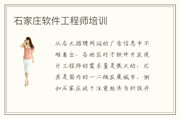 从各大招聘网站的广告信息中不难看出,各地区对于软件开发设计工程师的需求量是很大的,尤其是国内的一二线发展城市。例如石家庄这个注重经济与科技并齐发展的城市,各大企业都在高薪招聘优秀的软件开发设计工程师,因此也就有了对于软件开发设计工程师的专业培训机构。那么,石家庄软件工程师培训的项目一般是什么呢?石家庄软件工程师培训的方式适合新手嘛?