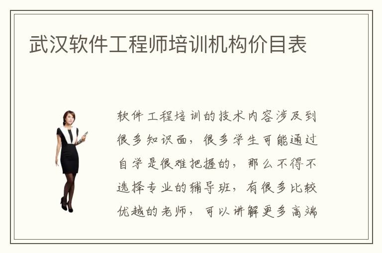 软件工程培训的技术内容涉及到很多知识面,很多学生可能通过自学是很难把握的,那么不得不选择专业的辅导班,有很多比较优越的老师,可以讲解更多高端的知识技术内容,让学生可以懂得更先进的技术知识点。当然不同的武汉软件工程师培训机构价目表也存在差异,再加上软件工程师培训技术含量不一样,所以大家在考虑这些软件工程师机构时,也要对比清楚优劣之处。软件工程师培训时间一般都会在1个月到4个月之内,因为如果时间比较长,那么学生可能会觉得自己的效率更低,没有办法真正运用到工作场景当中。而如果是对于学习成绩不太好的人来说,可能也需要更长的时间,才能够真正把握真正的技能,因此大家要付出汗水,了解软件工程师培训内容、培训方法以及培训质量等等。