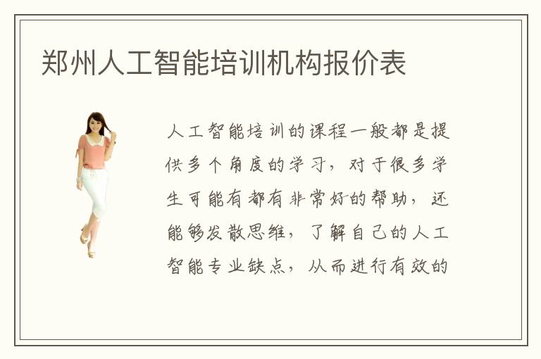 人工智能培训的课程一般都是提供多个角度的学习,对于很多学生可能有都有非常好的帮助,还能够发散思维,了解自己的人工智能专业缺点,从而进行有效的弥补。但是也有一些学生在选择人工智能培训机构,没有了解清楚郑州人工智能培训机构报价表,也不知道人工智能培训机构成果,当然就会有很多问题,所以大家要谨慎了解这些因素。人工智能培训学习目标主要就是为更多学员去提供很多优质的辅导方法,不仅能够学生有可能就能学习时间,提供小组教学或是个性化教学的多重学习方法,让学生不断去满足学习的需要,在学习人工智能专业培训的过程中,得到更好的经验提升,减少学习的压力和烦恼,不会有太多明显的学习障碍。当然自己要去花时间研究人工智能的相关知识,也不是只有依赖于人工智能培训机构的培养。